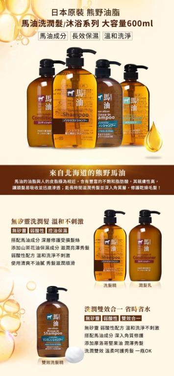Kumano Yushi 熊野油脂無硅油馬油洗頭水600ml (平行進口)4513574012752